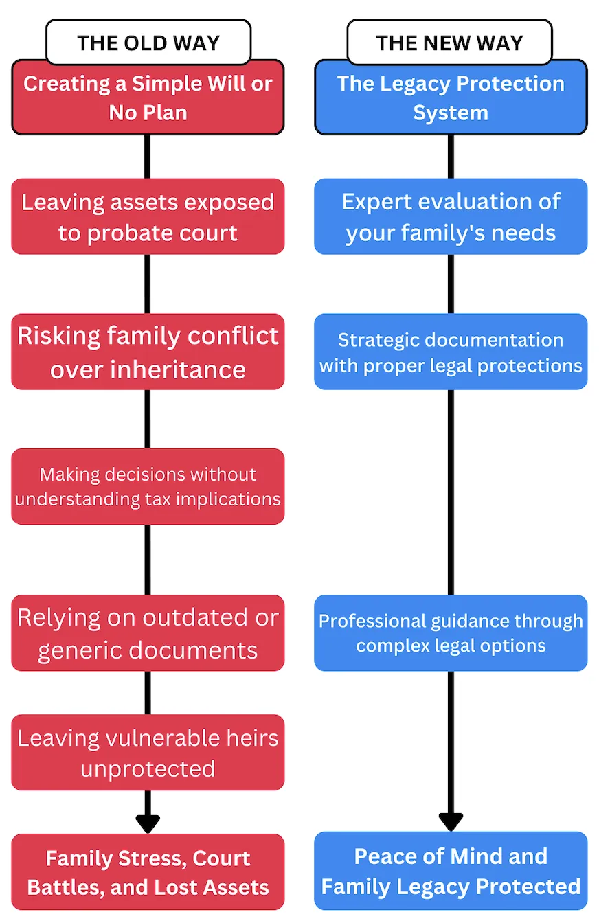 As a result, the Legacy Protection System turned the traditional probate model upside down, broke all the rules, and freed families from the limitations imposed by one-size-fits-all solutions.